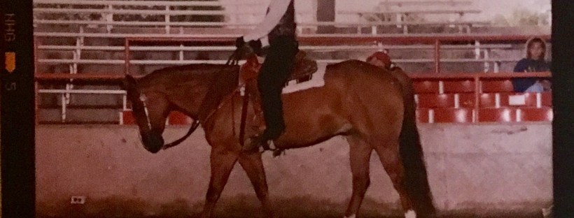 My mom and I were hauling Beau down the highway on our way to on of our first horse shows, when the two-horse trailer started rocking, which shook the vehicle too. We had just gone past an exit, so we pulled over to see what was causing the problem. When we checked in the trailer, Beau had gotten his front legs into the manger, and one of his back legs over the trailer divider. There we were, pretty far from home with no idea how we were going to help him out in order to assess for injuries. As there were no cell phones then, I really do not remember how we contacted people, but the vet ended up meeting us on the highway, sedating him, and helping us free him from the tough situation he’d gotten himself in. In the end, he ended up cutting his poll in a perfect triangle shaped flap from ear to ear and spent the better part of that summer with a shaved buzzcut for a forelock. I wasn’t smiling at the time, but it is so indicative of the growth and challenges we overcame in our early years.